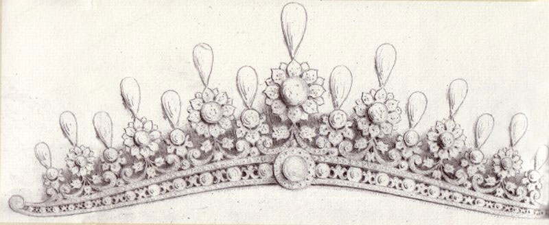der Tiara mit Perlen wurde jedoch dann mit Diamantblüten