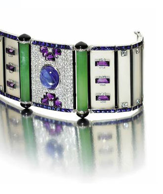 - An Art Deco chalcedony, sapphire, amethyst and diamond bracelet, late 1920s.