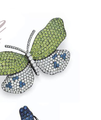 - PAIR OF BLUE AND PINK SAPPHIRE AND DIAMOND BROOCHES - Frauenschuh als Diamant- Blütenbrosche und pinkfarbenen Saphiren.